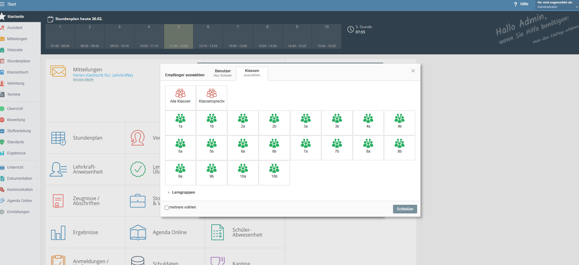 - Neu: Gesonderte Kennzeichnung der Klassensprecher bei der Empfängerauswahl einer Nachricht