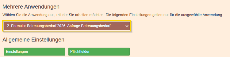 - Wählen Sie unter Mehrere Anwendungen nun das Formular Betreuungsbedarf [...] aus, wenn dies nicht bereits angezeigt wird.