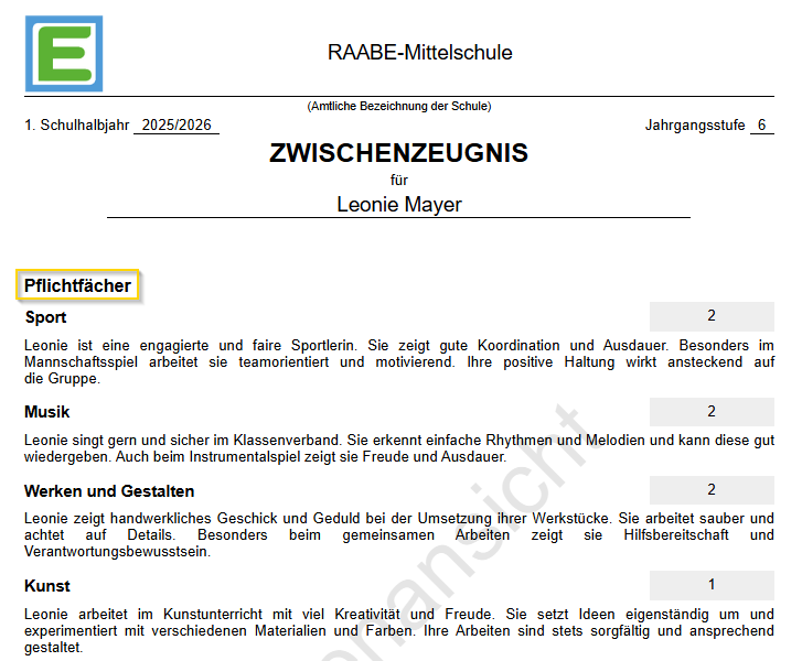 | Bezeichnung | Zeugnisvorlage | Besonderheiten |