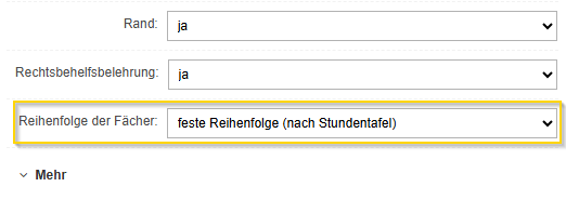 dynamische Reihenfolge gewählt werden. Mit dieser Einstellung wird die Reihenfolge so übernommen, wie sie bei der Angabe der Zeugnisfächer für die Klasse festgelegt wird; vgl.