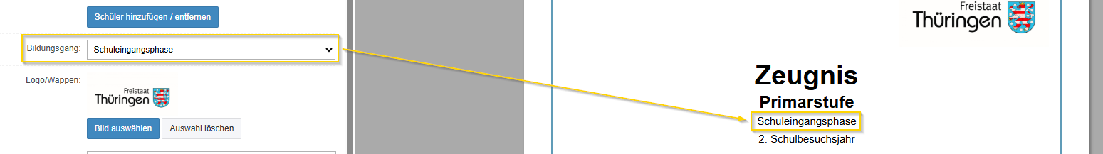 Bei Bildungsgang können Sie wählen, ob auf dem Zeugnis Schuleingangsphase oder Bildungsgang zur individuellen Lebensbewältigung abgedruckt werden soll.