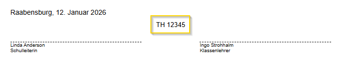 Name und Ort der Schule im oberen Bereich des Zeugnisses werden automatisch aus den in